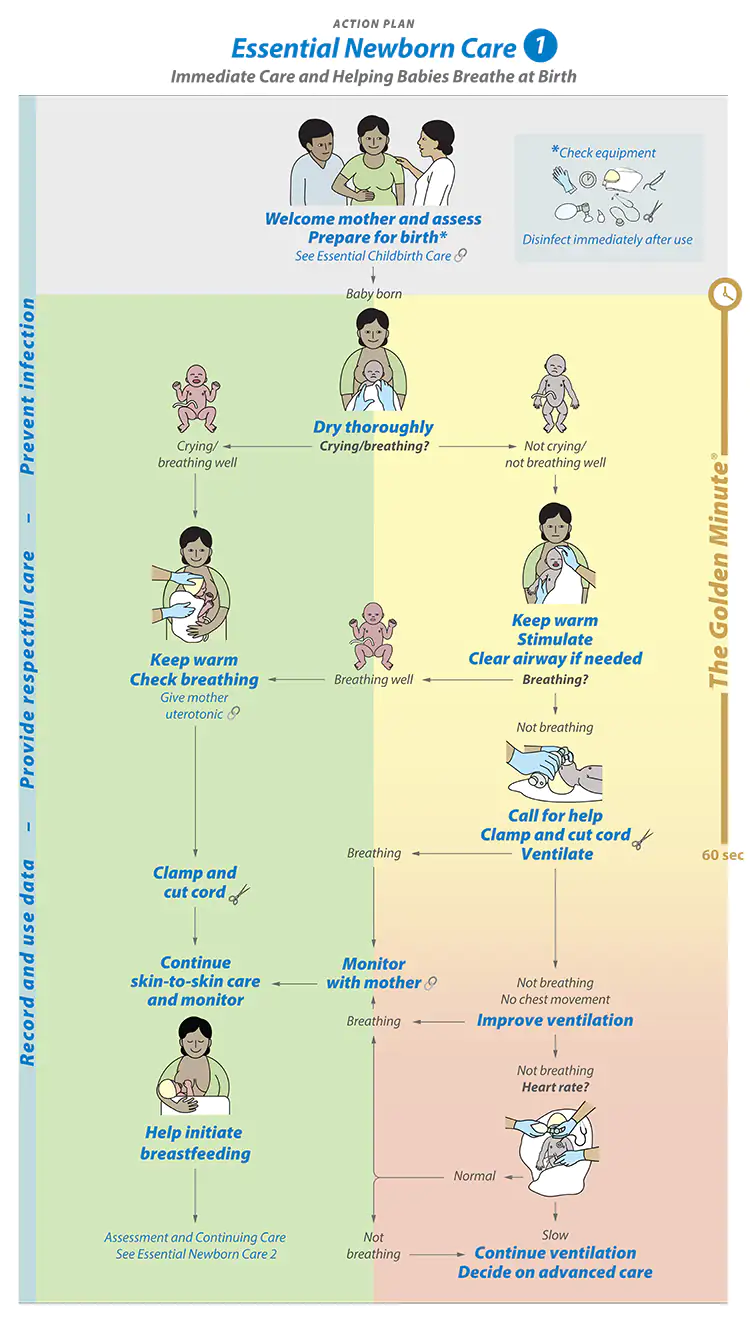 Yellow: The Golden Minute section: help a baby breathe within one minute